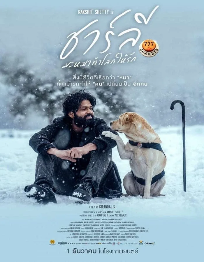 Title: 777 Charlie (2022) ชาร์ลี มะหมาท้าโลกให้รัก Awards: N/A Country: India Genre: Adventure, Comedy, Drama Actors: Rakshit Shetty, Charlie, Sangeetha Sringeri Director: Kiranraj K Writer: Kiranraj K, K.N. Vijay Kumar, Satheesh Muthukulam BoxOffice: N/A Rated: N/A Released: 10 Jun 2022 Runtime: 164 min